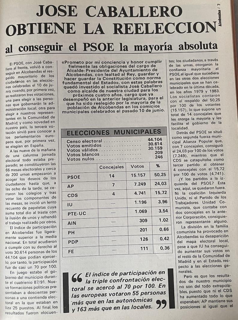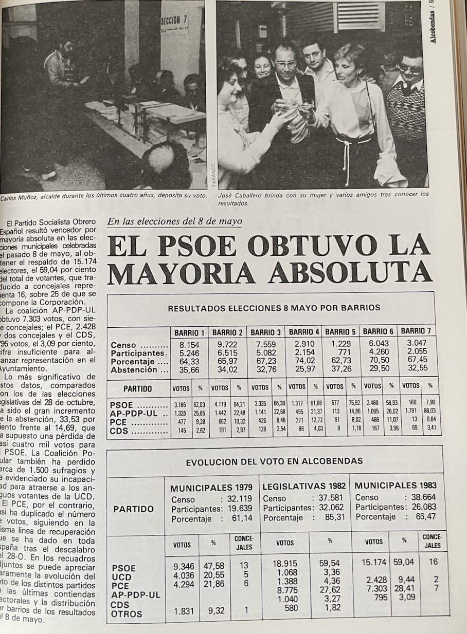 Bajo el mandato de José Caballero se construyen las primeras viviendas de protección oficial, se refuerzan los servicios municipales y se crean recursos como el Centro de Acogida al Refugiado y el Centro Asesor de la Mujer. Alcobendas comienza a obtener reconocimientos nacionales que avalan su modelo de gestión, como la creación de la primera Concejalía de la Mujer de España. Y en nuestra Agrupación contamos con la primera mujer secretaria de Organización, Mercedes Jiménez.