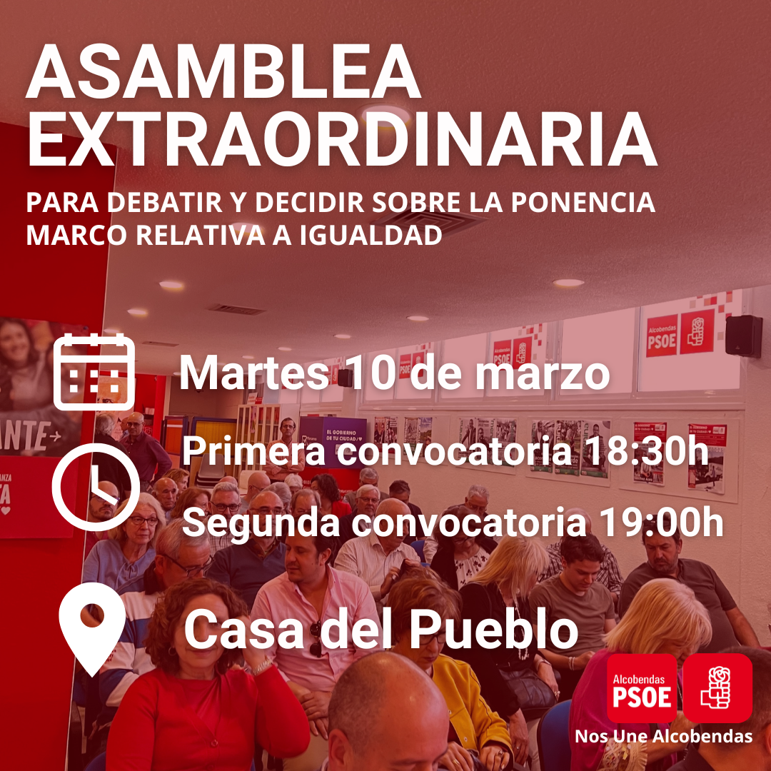 La Agrupación Socialista de Alcobendas celebrará una Asamblea Extraordinaria para debatir y decidir sobre la ponencia marco relativa a igualdad.
